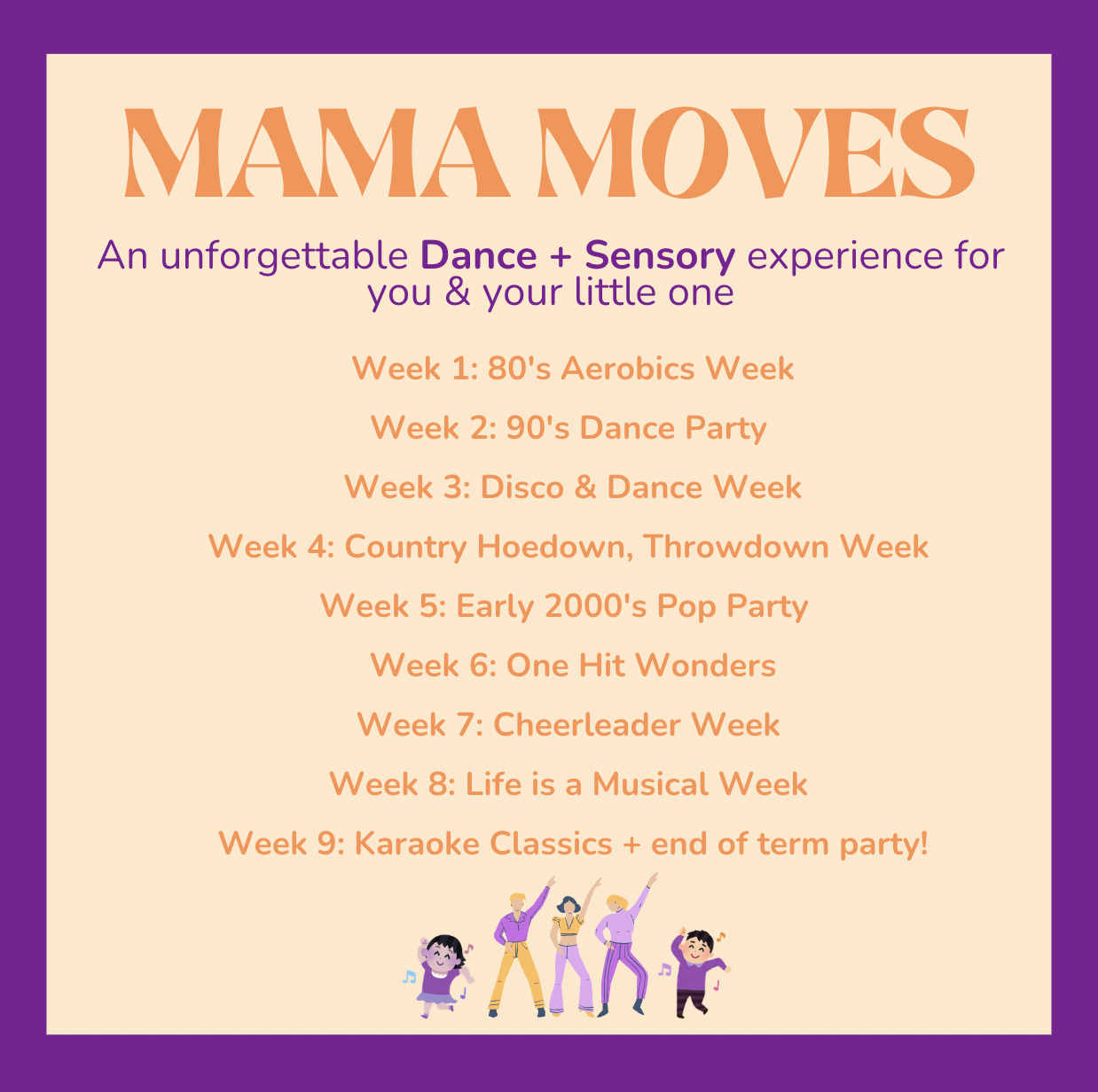 Join our fun, feel-good and bonding focused Mama Moves classes, designed with you and your little one in mind.